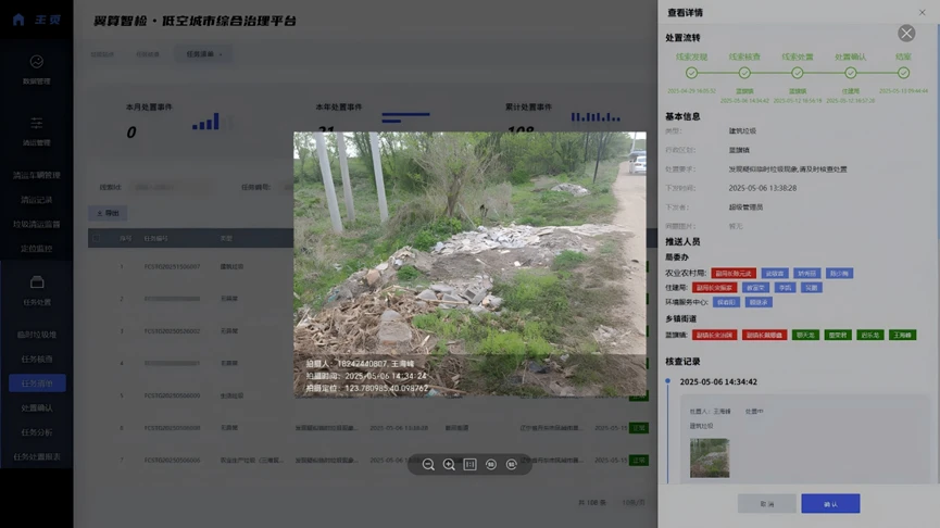 翼算智检的到来,为这些痛点提供了系统性解决方案。依托天空地一体化智能协同巡检能力,平台整合卫星遥感、无人机巡检、地面摄像头等多源感知设备,构建起“空中巡查+地面监控+智能分析”的立体监管网络。在凤城,无人机按预设航线每日巡航,高清摄像头精准识别垃圾堆放、渣土撒落等场景,哪怕是河道草丛中的零星垃圾、拆迁工地的建筑垃圾堆积,都能被实时捕捉。
